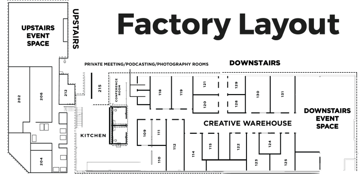 The Factory is an affordable, unique event space in San Diego! Our 1700+ Sq Ft downstairs event space is perfect for weddings, networking, creative workshops, private parties, and more. Our upstairs co-working floor offers a climate-controlled 1400 Sq Ft meeting room great for seminars and speaking events. We also offer whole-factory buy-outs. Get in touch to host your next event at our event space in San Diego!
